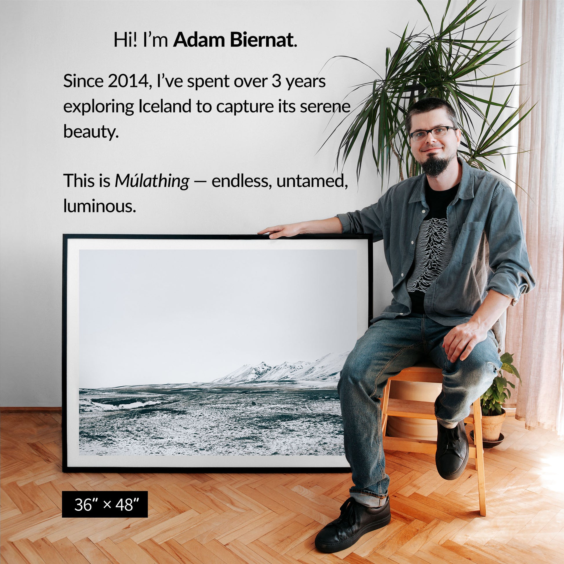 All artworks are created by me — Adam Biernat, an award-winning fine art photographer. I’ve spent the last decade chasing stillness across Iceland’s most remote corners.