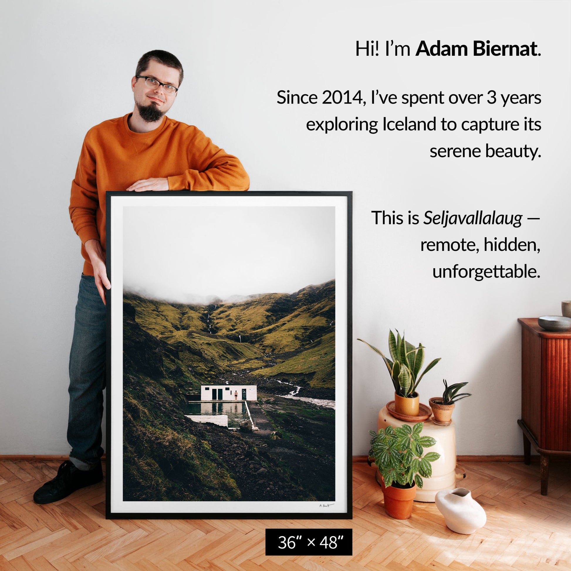 All artworks are created by me — Adam Biernat, an award-winning fine art photographer. I’ve spent the last decade chasing stillness across Iceland’s most remote corners.