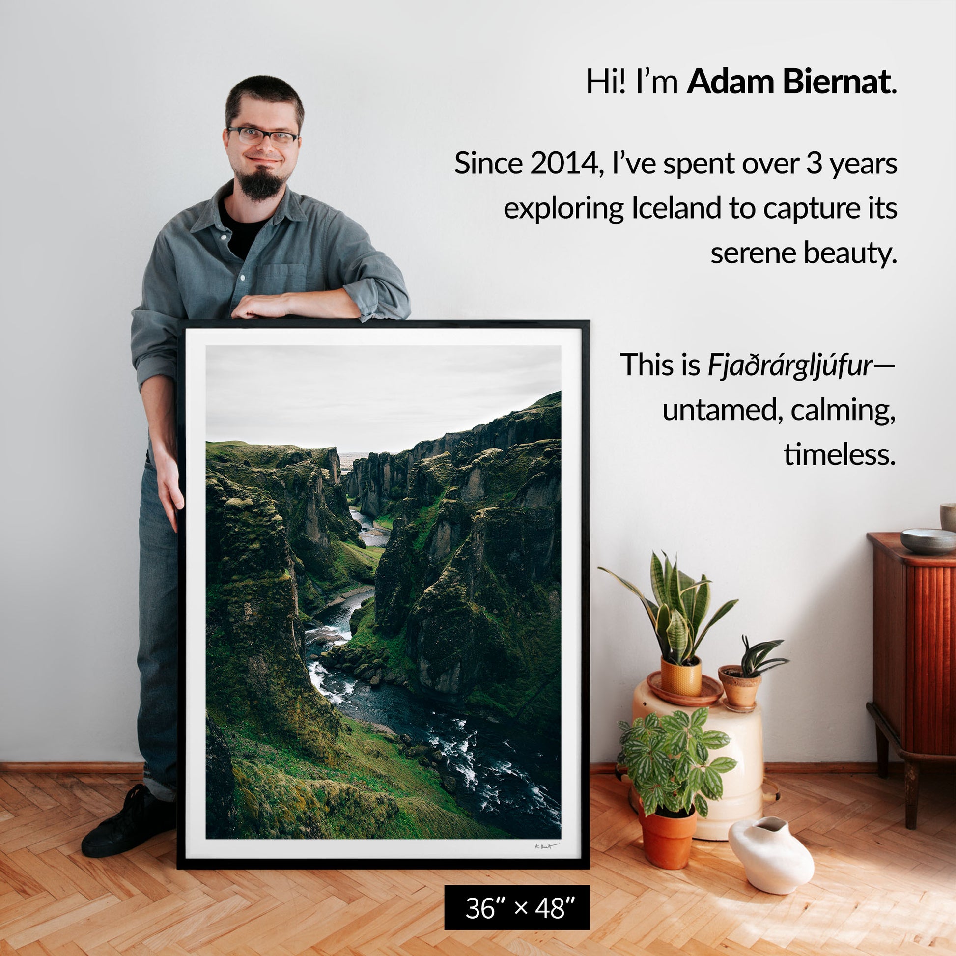 All artworks are created by me — Adam Biernat, an award-winning fine art photographer. I’ve spent the last decade chasing stillness across Iceland’s most remote corners.