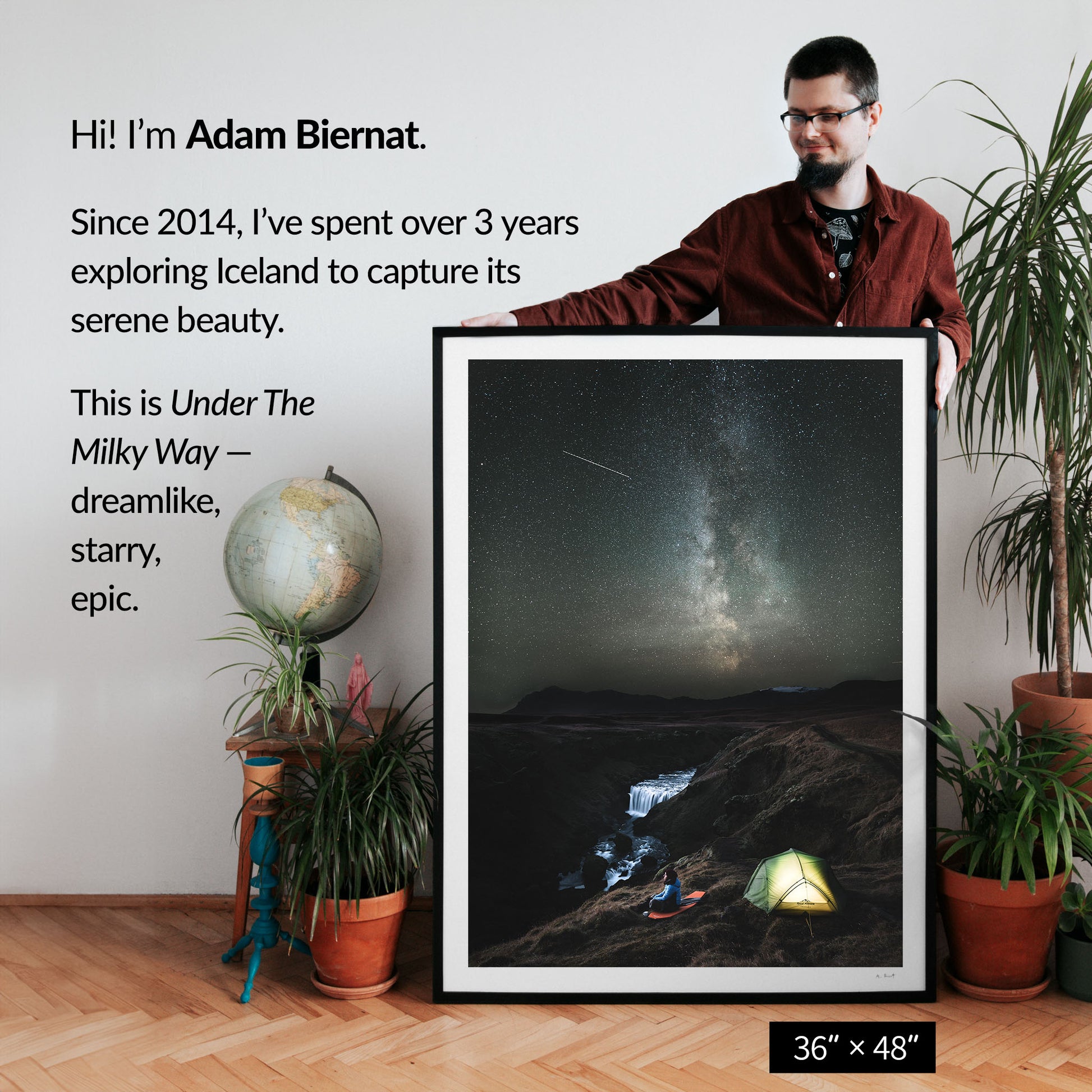 All artworks are created by me — Adam Biernat, an award-winning fine art photographer. I’ve spent the last decade chasing stillness across Iceland’s most remote corners.