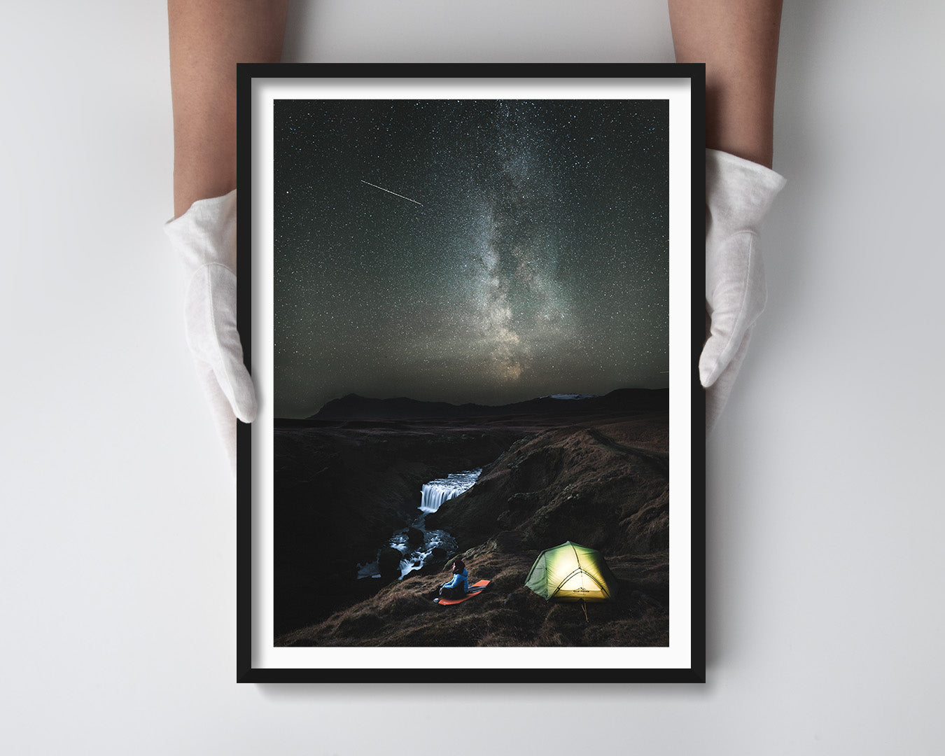 Captured on the Fimmvörðuháls trail in South Iceland, this artwork is a portrait of solitude, wonder, and scale — a reminder of how vast the world becomes when everything else falls away.